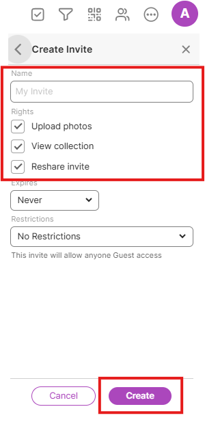 - Share Invite (if enabled) → Guest can share the collection with others.