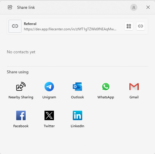 This feature allows a user to share an invite with another user and grant view-only permission. The invited user can access and view the shared files or content but cannot upload.