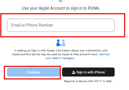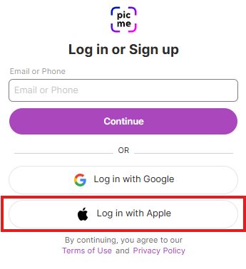Login with Apple allows users to securely sign in to PicMe using their Apple ID instead of creating a separate account. This feature provides a simple, fast, and privacy-focused authentication method, enabling users to access PicMe quickly while maintaining their security and privacy.