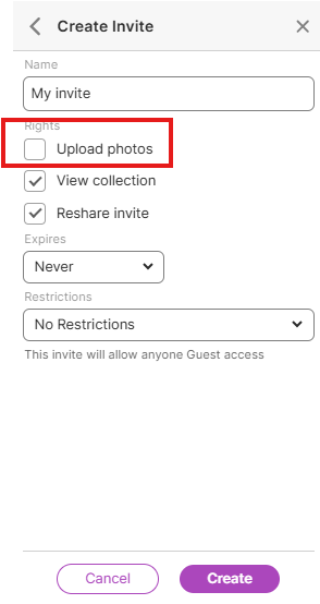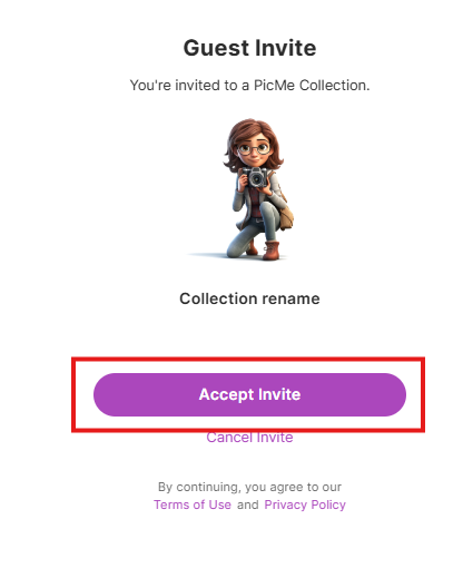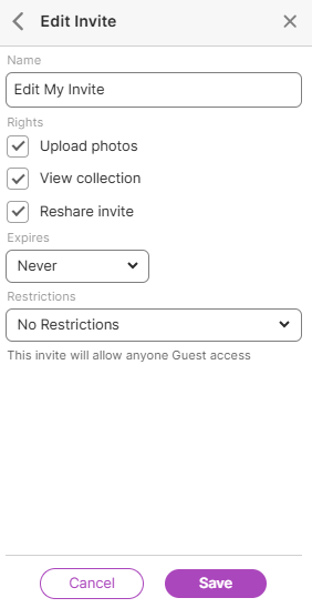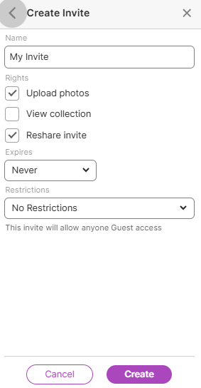 - Share Invite (if enabled) → Guest can share the collection with others.