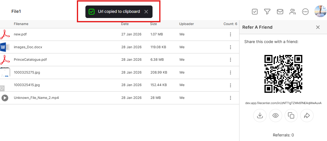 This feature allows a user to share an invite with another user and grant view-only permission. The invited user can access and view the shared files or content but cannot upload.